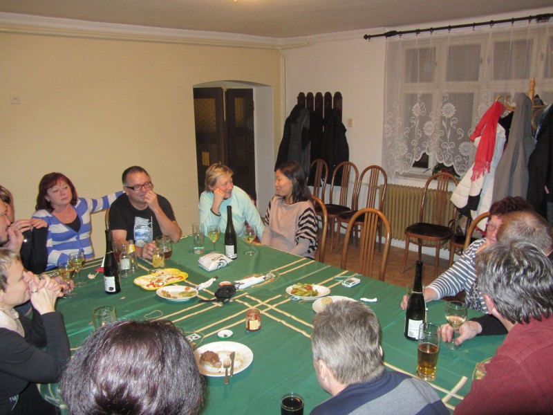 naši degistační slezinu mohou při prohlížení jen tiše závidět a snažit se s nosem u obrázku alespoň imaginárně zachytit tu libou vůni masa a domácího chleba. Předchozí grilovačka proběhla v létě u Marty na dvoře. Tentokráte jsme se uchýlili do salonku. Na náladě a chuti to nic neubralo. Dík za zajištění hlavního chodu patří opět Broňovi a Vlastě s chlebem