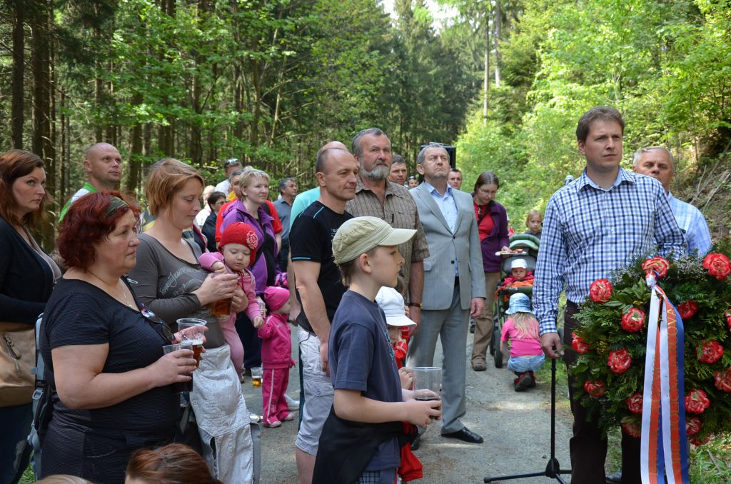 Setkání obyvatel u partyzánského bunkru na Oznici