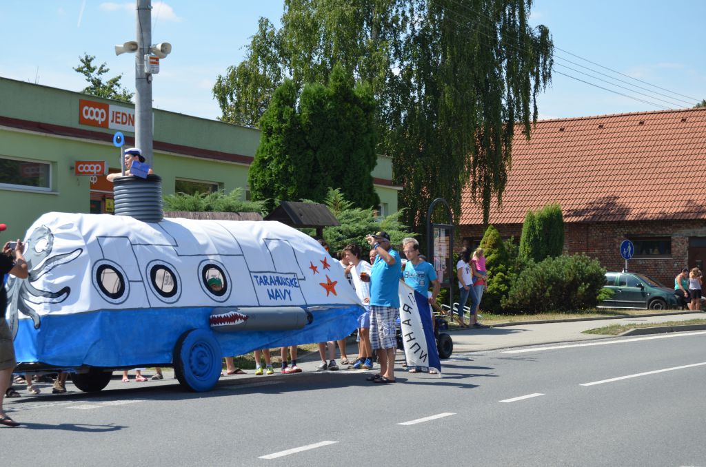 v Poličné. Letošní ročník se odehrál pod organizátorskou taktovkou kapitánů jednotlivých týmů. A začal klasickým průvodem alegorických vozů, který dorazil na hřiště TJ, kde proběhlo slavnostní zahájením pomyslným výkopem hosta, europoslankyně paní